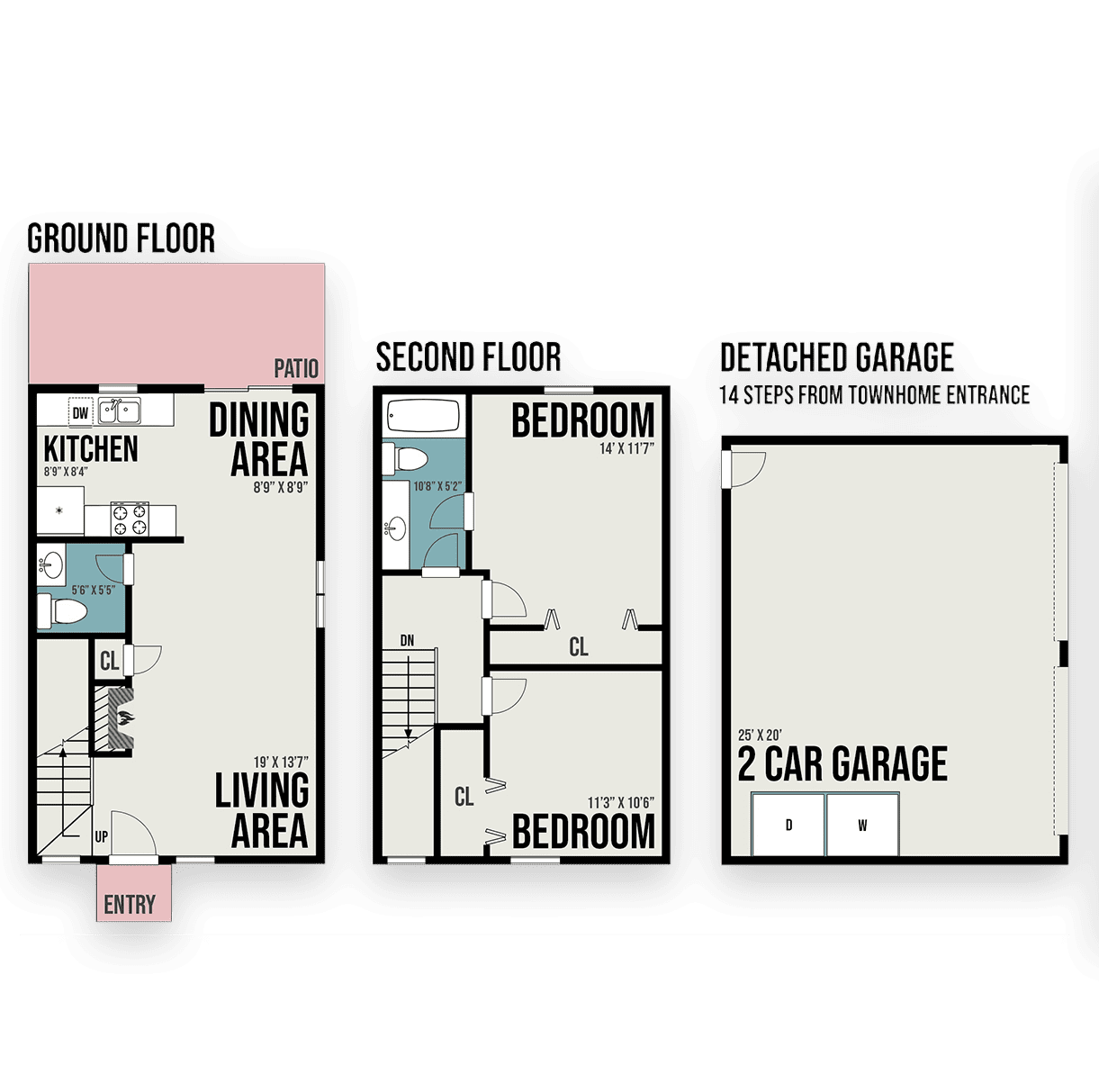This two-story layout offers 2 bedrooms and 1.5 baths with a private patio, fireplace, and full-size washer and dryer connections. The living and dining areas are designed for everyday comfort, with a two-car garage providing extra space and convenience.